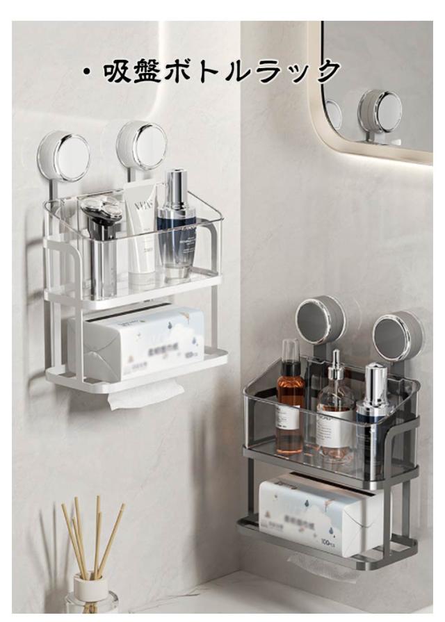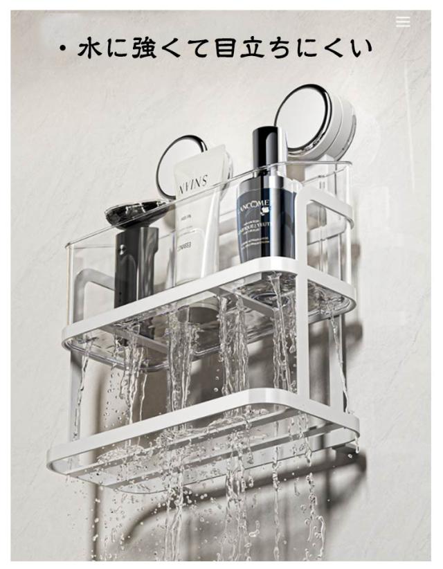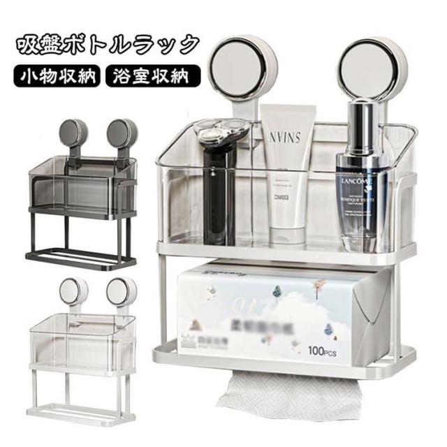 吸盤式 浴室 ティッシュケース ラック 壁掛け 収納 棚 バスラック 浴室 バスケット 浮かせる かご 壁面収納 浴室収納 小物 シャンプーボトル おしゃれ クリア 透明 バス雑貨