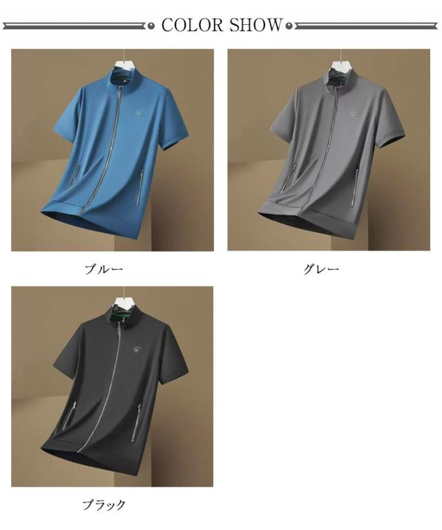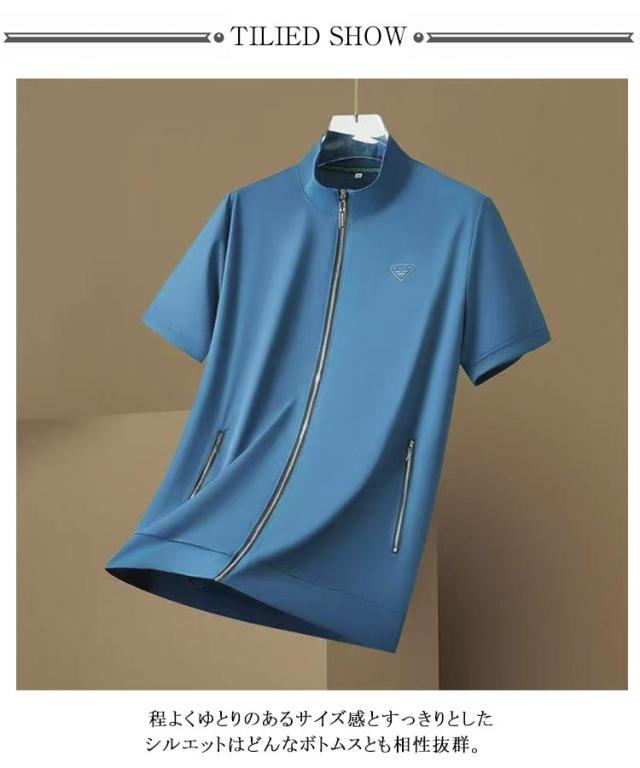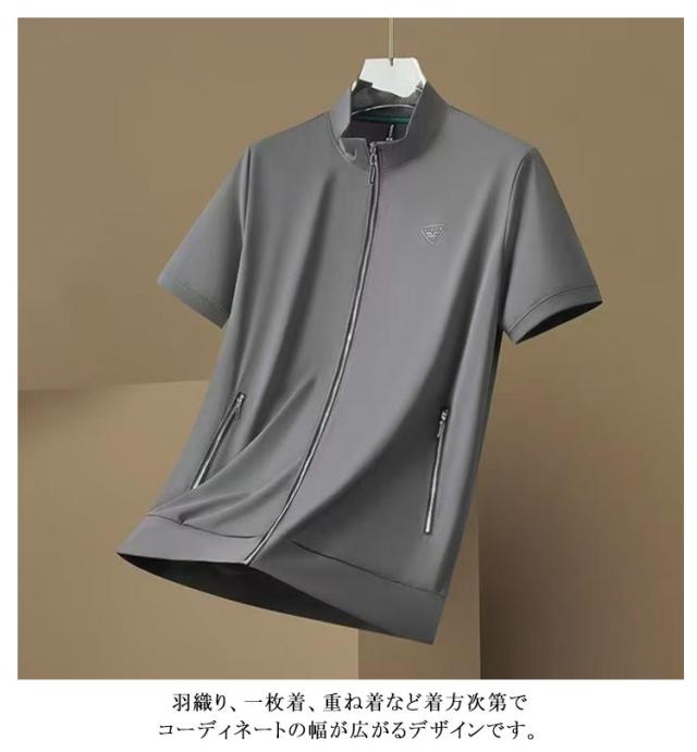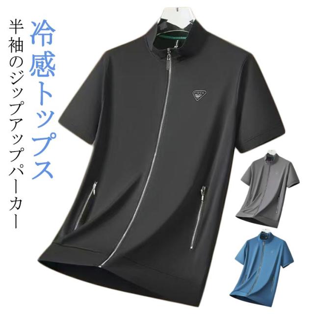 ブルゾン パーカー ジップアップ 半袖 紳士服 ストレッチ 吸汗速乾 夏アウター 薄手 スタンドカラー 立ち襟 涼しい ひんやり ゴルフ メンズ 大きいサイズ 冷感 冷感 ビジネス スポーツ ウェア アウトドア