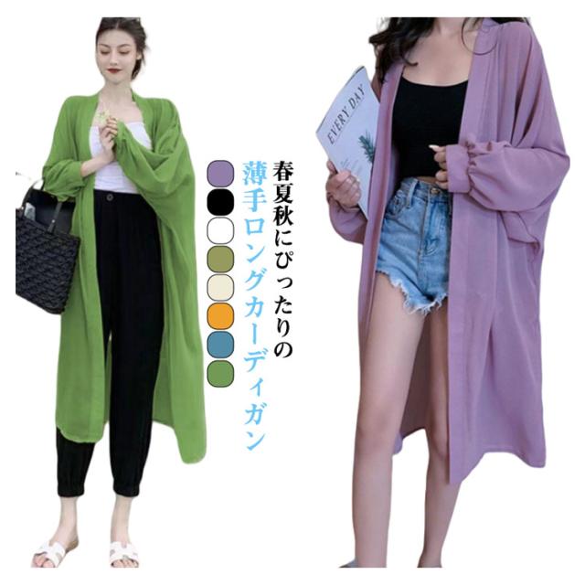 薄手 ロングカーディガン 長袖 レディース 紫外線カット カーディガン ロング丈 シフォンカーディガン 紫外線対策 サマーカーディガン ロング 長め 長め丈 ロングカーディガン カーデ 透け感 きれいめ レディース 大きいサイズ ゆったり