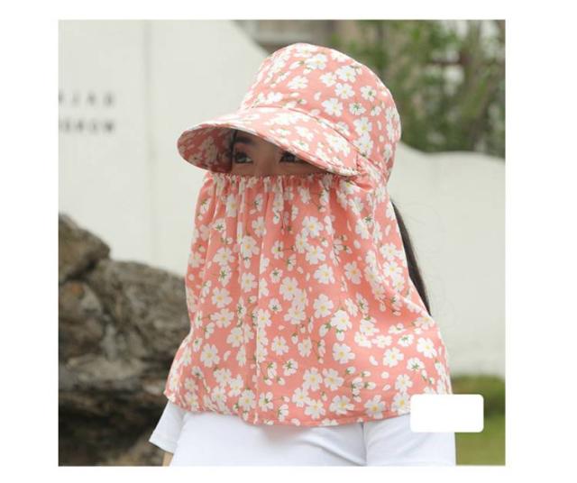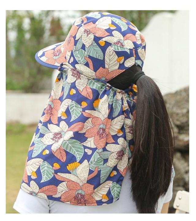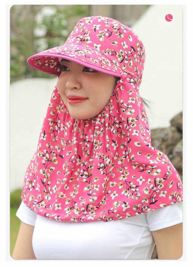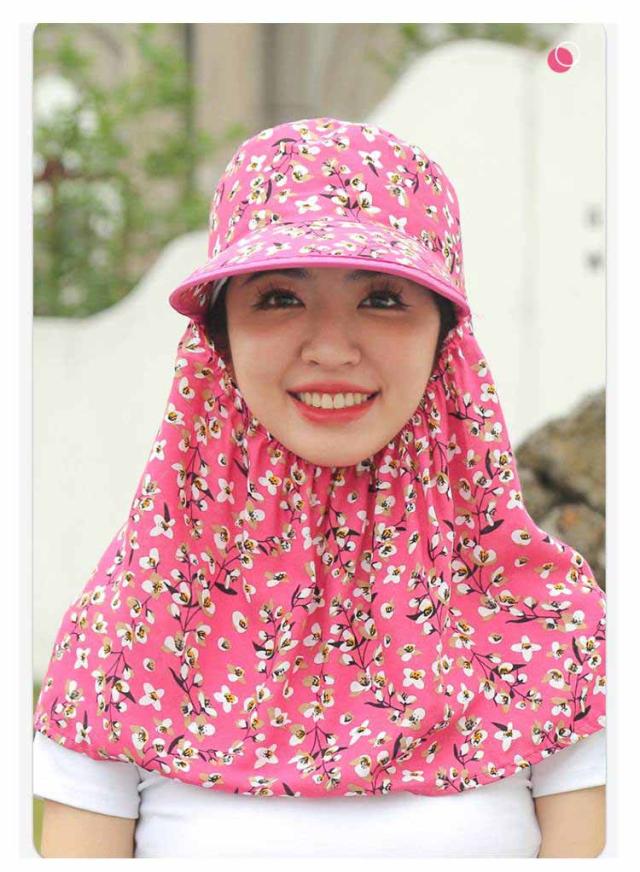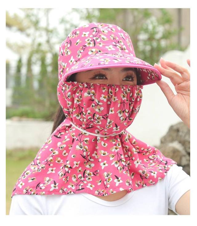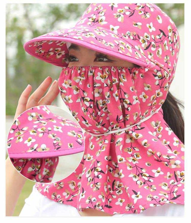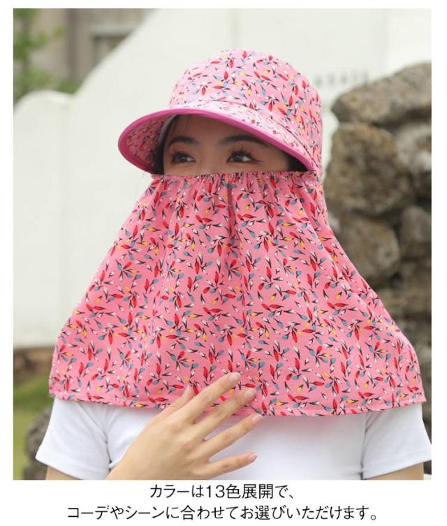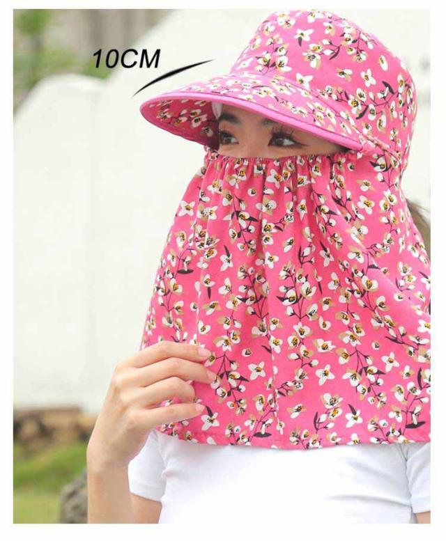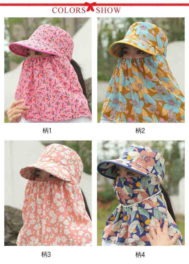 フェイスカバー付き 日除け帽子 UVカット サンハット 10cmつば 首元ガード 夏用 ガーデニング 日除け帽子 花柄 農作業 サイクリング お出かけ用 折りたたみ ポニーテール対応 女性用 釣り 登山