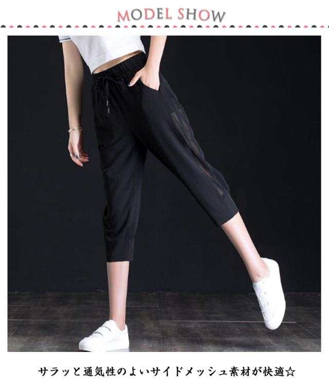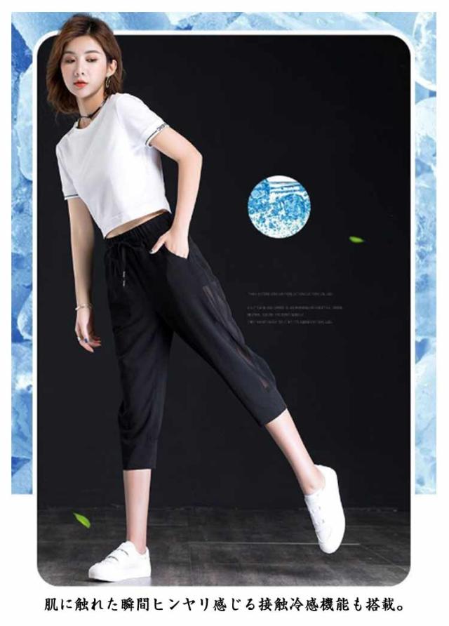 クロップドパンツ 7分丈/9分丈 涼感 接触冷感 レディース テーパードパンツ パンツ 夏 涼しい ひんやり スポーツ 吸汗速乾 ボトムス カジュアル サイドメッシュ スポーツウェア 薄手 無地 大きいサイズ お洒落