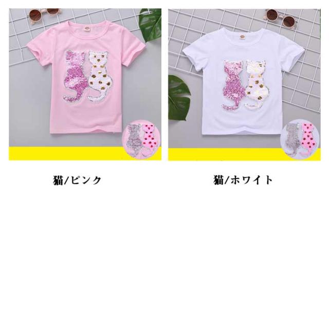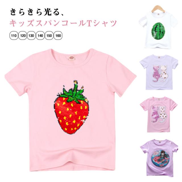 半袖 子供服 トップス 夏服 面白い 可愛い 女の子 キラキラ キッズ おしゃれ 大きいサイズ スパンコール 男の子 トップス 子ども服 ジュニア 夏 110 120 130 140 150 半袖 半袖tシャツ 通園 通学 お出かけ 旅行 ギフト プレゼント