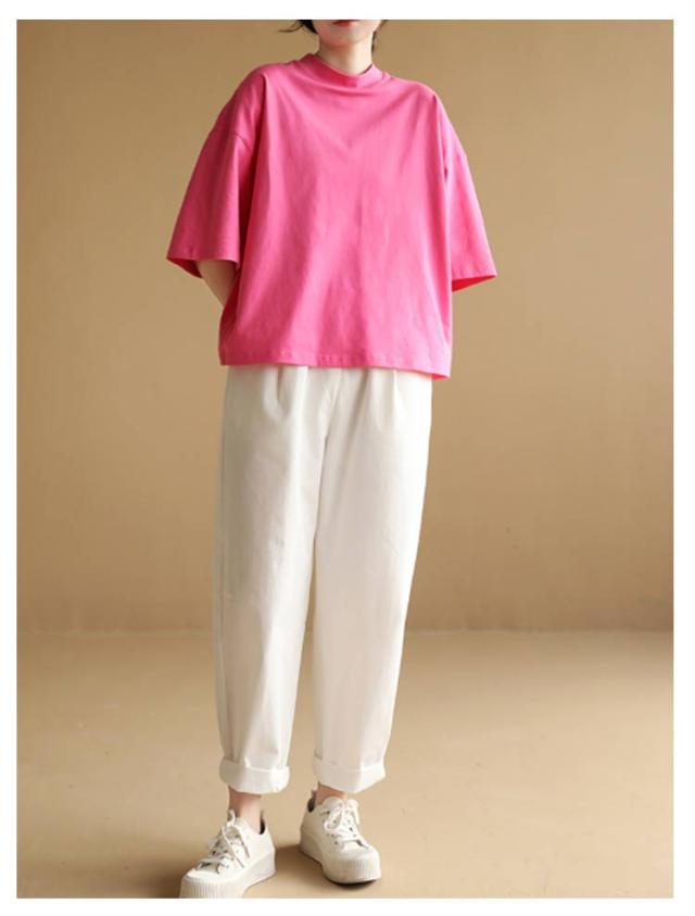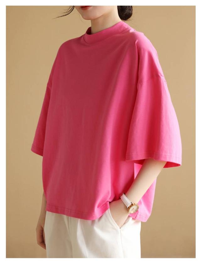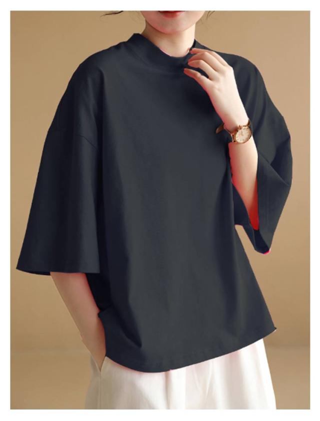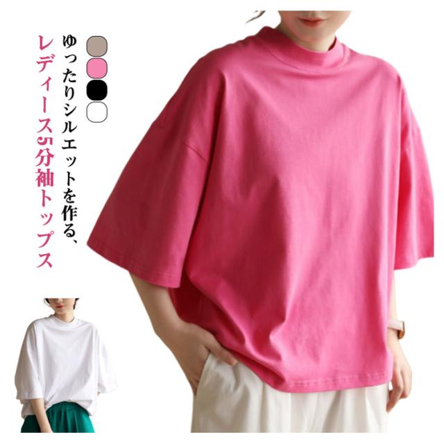 カットソー Tシャツ レディース シンプル 夏新作 大きいサイズ 5分袖 クルーネック 無地 5分袖 おしゃれ カジュアル 半袖Tシャツ ゆったり 体型カバー 着?せ 半袖 ロングT 夏服 大人 女性