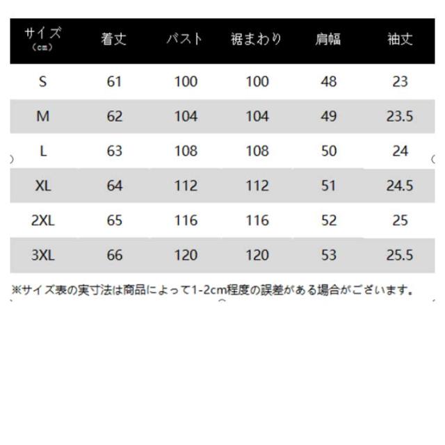 | サイズ | S M L XL 2XL 3XL |