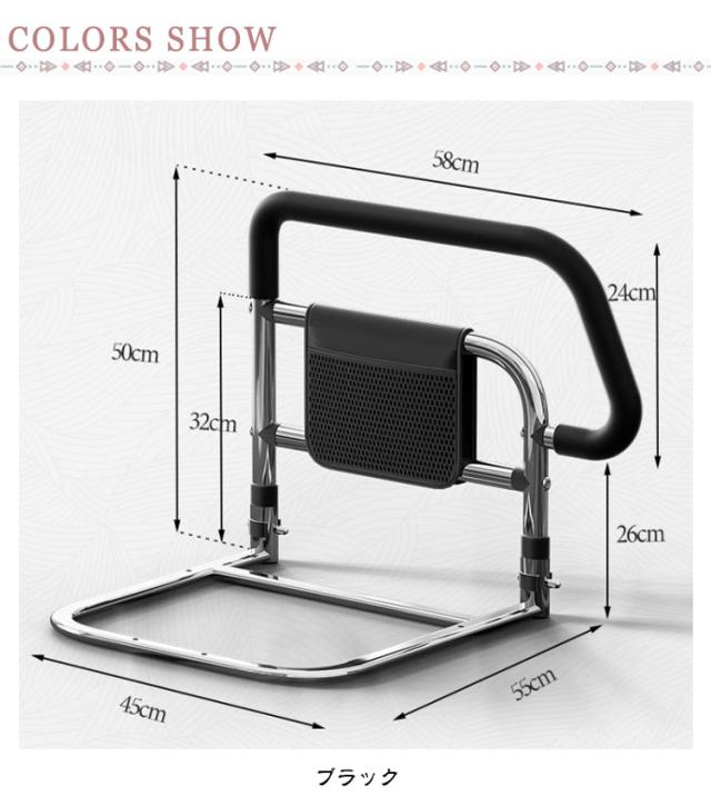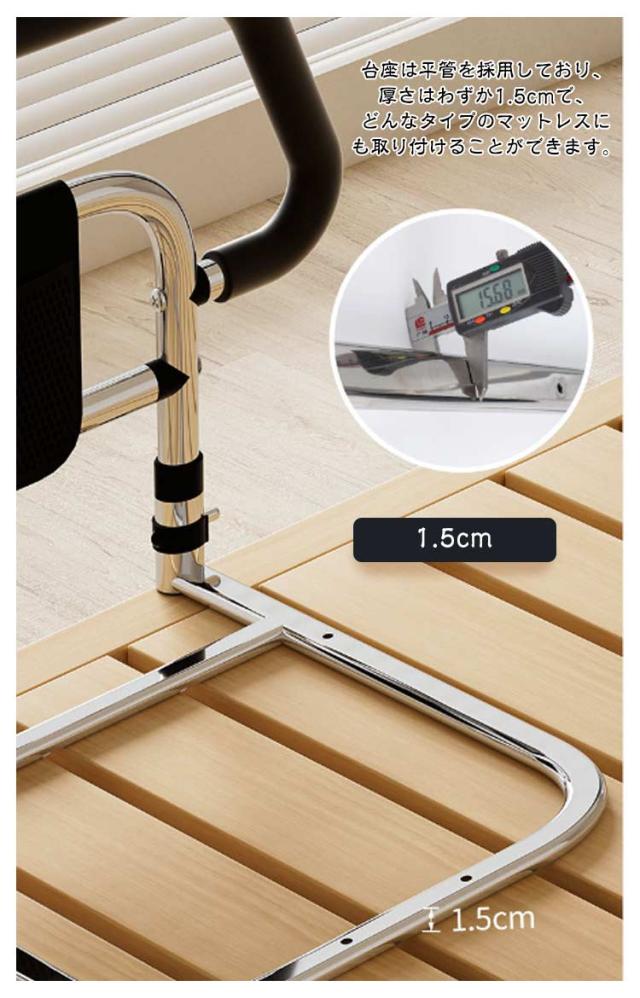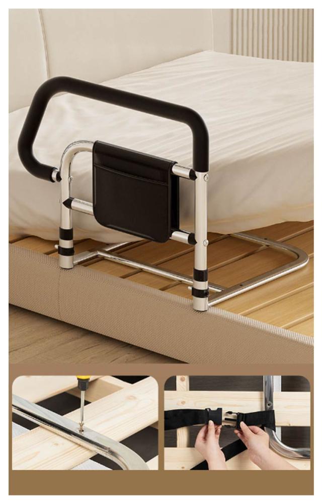 | 転落&落下防止 ベッドサイドガード ベッドから起き上がるのに苦労している方にベッドへの出入りを支援するように設計されています。 50cmのガードレールは転落防止だけでなく、起立支援にも役立ちます。 マットレスの下に差し込むだけで、布団のずれ落ち・落下防止に役立ちます! 塗装された炭素鋼でできており、耐久性があり、強い耐荷重能力を持っています。 台座は平管を採用しており、厚さはわずか1.5cmで、どんなタイプのマットレスにも取り付けることができます。 手すりの部分は滑り止めゴムが付き、滑り止め効果がありながら、冬でも冷たさを感じにくく。 収納ポケットが装備され、携帯電話、薬、メガネ、本、リモコンなど様々な小物を収納するのに便利です。 また、ひざや腰に負担をかけずに立ち上がるための補助としてもご利用いただけます。 | |