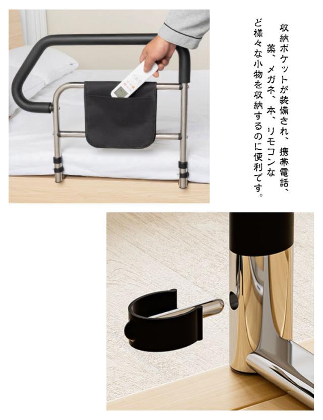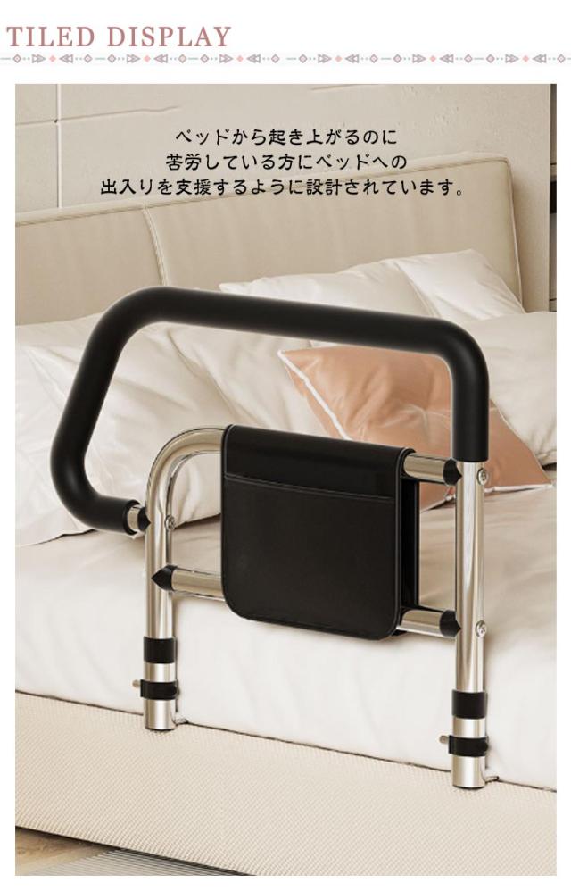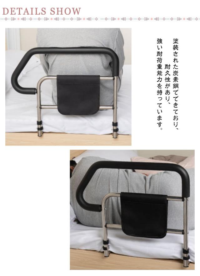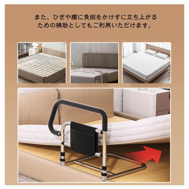 ベッドサイド ベッド用 ベッド用 ベッドガード 起き上がり手すり 補助ガード 転倒防止 小物整理 収納ポケット付き 高齢者 ベッドアーム 組立簡単 安定性 布団ずれ防止