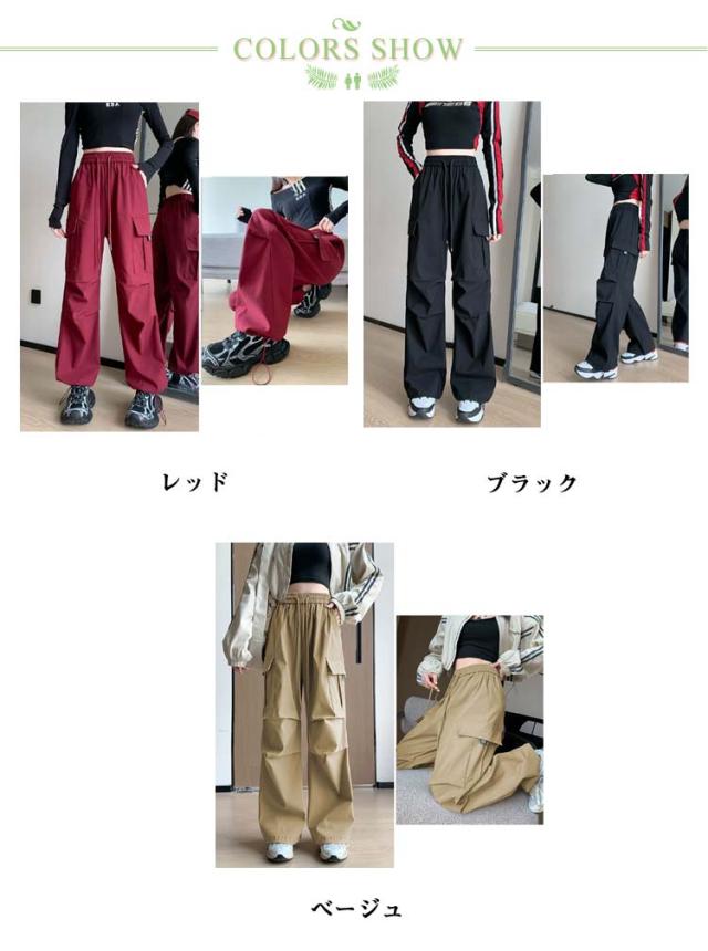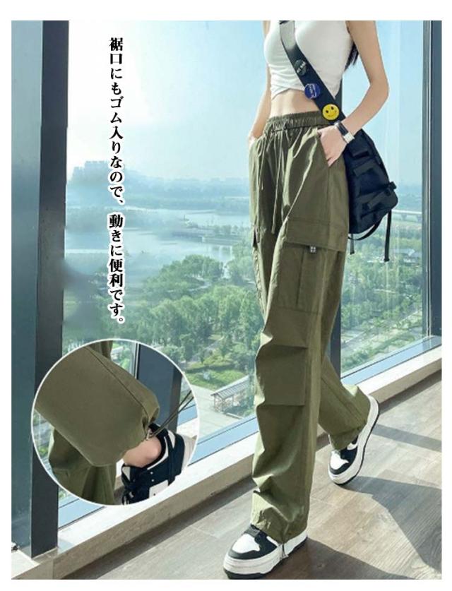 夏 ゆったり レディース ロングパンツ 薄手 ボトムス カーゴパンツ カジュアル 女性用 秋 パンツ ズボン 春 無地 ウエストゴム ダンス用 動きやすい カーゴパンツ シンプル かっこいい