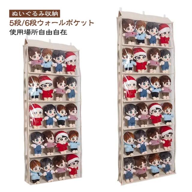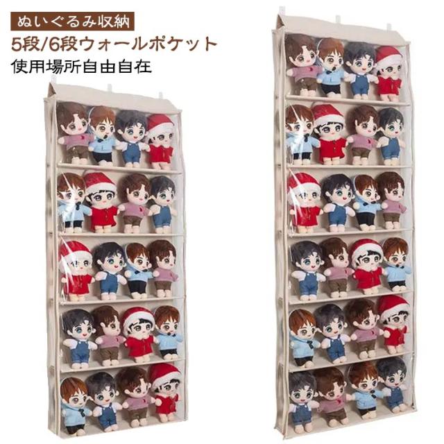 ぬいぐるみウォールポケット 5段/6段収納ケース コレクションケース ぬいぐるみウォールポケット ディスプレイ 収納ボックス コレクション ぬいぐるみ 小物 ドア掛け収納式ポケット 壁掛け収納ポケット 吊り下げ収納
