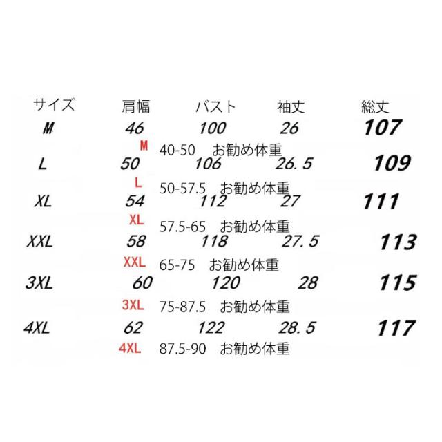 | サイズ | M L XL 2XL 3XL 4XL |