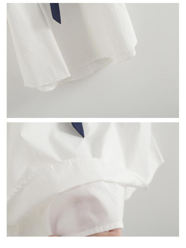 | セーラー襟と胸元のリボンがチャーミング! 柔らかい生地で着心地がいい、やや薄手な素材はこの季節とピッタリ! ボトムを選ばずコーディネートしやすいお洒落トップス! | |