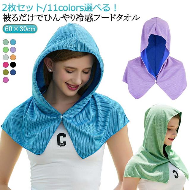 | 2枚セット/11colors選べる! 被るだけでひんやり冷感フードタオル | |