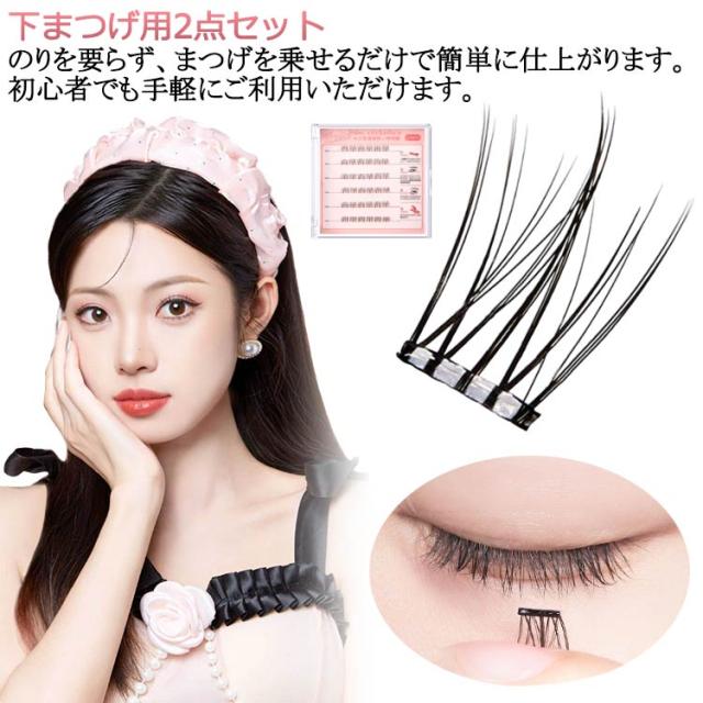 下まつげ つけまつ毛 部分用 のり不要 接着剤不要 のり付きまつげ 2点セット 透明軸 簡単 盛れる 束感 束 ナチュラル 2点セット 自然 下 ブラック 黒 睫毛 まつ毛 まつげ 付けまつげ 付け睫毛 下まつげ ベースメイク