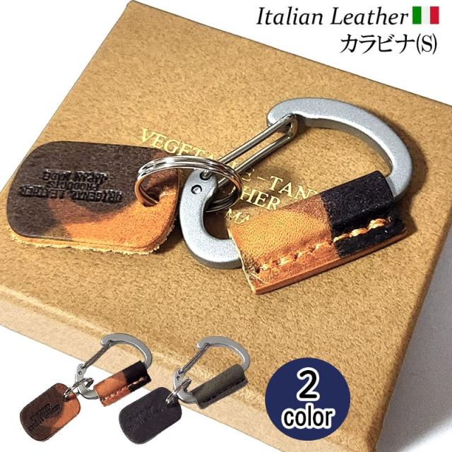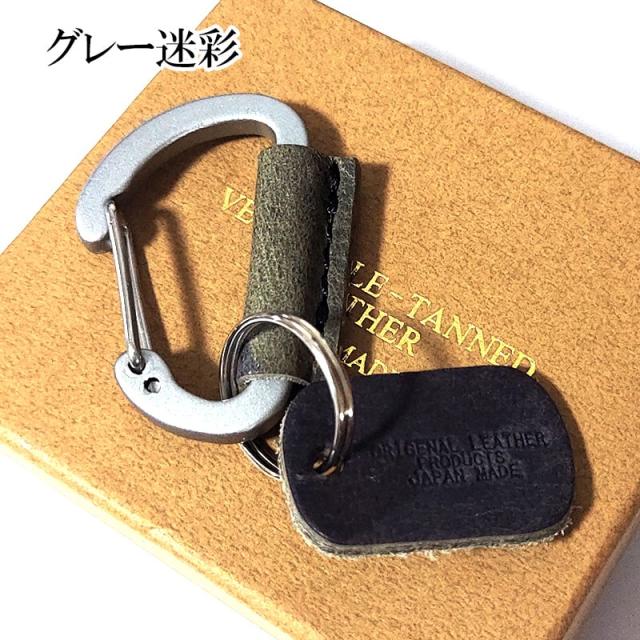 カラビナ イタリアンレザー ミニ キーホルダー おしゃれ キャメル迷彩 グレー迷彩 キーリング コンパクト 国産 本革 かっこいい 革小物 ラッピング 箱入り ギフト レディース 牛革