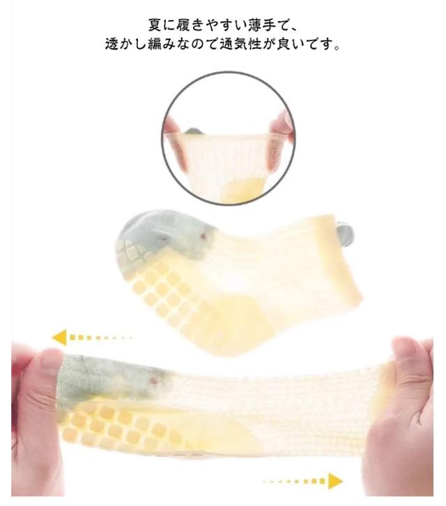 【6足セット】 メッシュ 赤ちゃん 女の子 靴下 子供 メッシュソックス ベビー服 夏用 ベビーソックス 快適 滑り止め付き キッズ くつ下 涼しげ 男の子 【6足セット】 新入園 ルームソックス 綿 可愛い ショートソックス クリスマス プレゼント 幼稚園 通園 通気