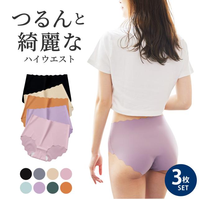 [3枚セット]ショーツ シームレス 下着 パンツ スカラップ スカラップカット シンプル ハイウエスト レディース ナイロン シームレス ランジェリー 上品 ノーライン 締め付けない パンティライン ドレス スーツ パンツ リノウル