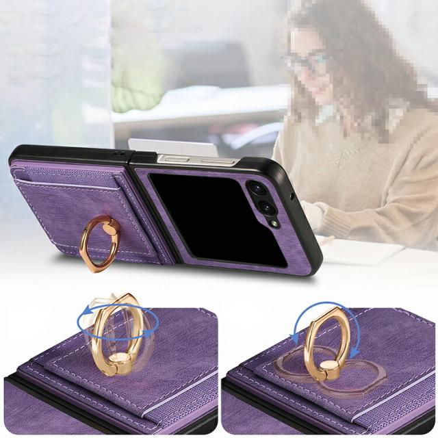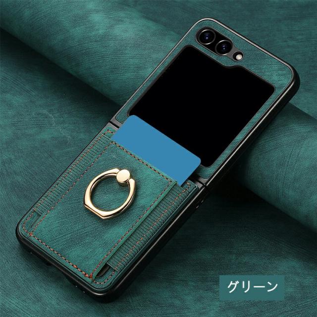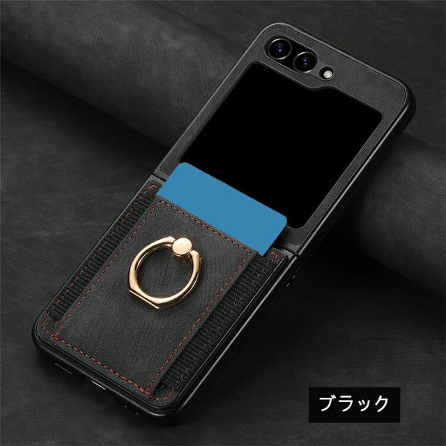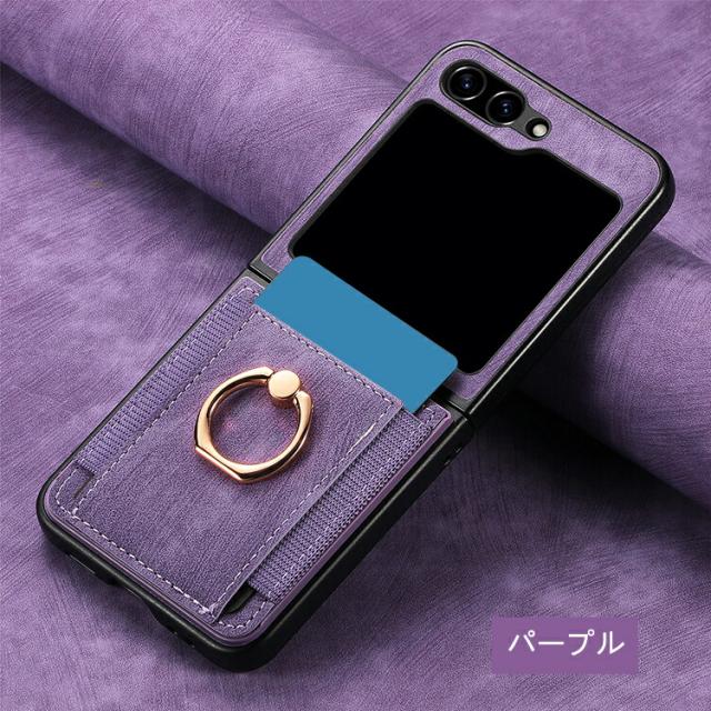 Galaxy Z Flip7 ケース /カバー 折りたたみ型 一体型リング付き ストラップ穴 スタンド機能 カード収納 PUレザー ストラップ穴 可愛い お洒落 Samsung サムスン ギャラクシー Z フリップ7 保護ケース アンドロイド おすすめ おしゃれ