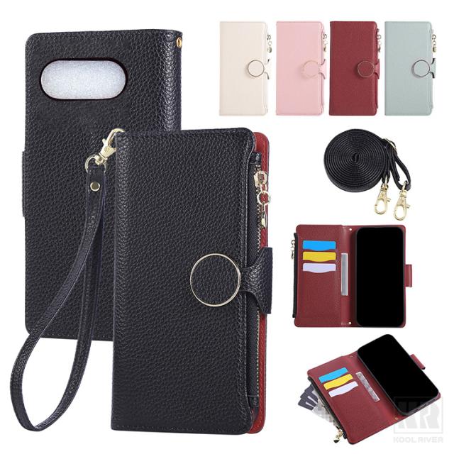 Pixel9a ケース スマホショルダー カバー 手帳型PUレザーケース ファスナー付きポケット カード収納 ストラップ 肩掛けベルト付き ハンドストラップ付き スタンド機能 ストラップ穴 かっこいい 耐衝撃ケース Google グーグル ピクセル9a スマートフォンケース/カバー
