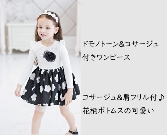 コサージュ&肩フリル付♪花柄ボトムスの超可愛い