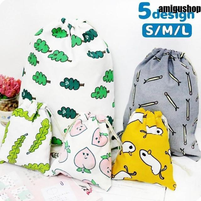 巾着袋 巾着 体操着袋 体操着入れ 小物入れ 幼稚園 小学生 小学校 木綿 イラスト かわいい 可愛い シンプル 大きい 大きめ