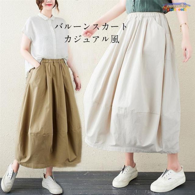 キーワード:ボトムス ロング丈 マキシ丈 スカート ロングスカート マキシスカート ミモレ丈 フレアスカート ミモレスカート レディース ロンスカ 膝下丈 ハイウエスト ウエストゴム ゴム バルーン コクーン 総ゴム ポケット 無地 ゆったり フレア 通勤 美脚 着痩せ 体型カバー ポケット付き ファッション カジュアル 森ガール風 レトロ 春 夏 秋 20代 30代 40代 50代 60代