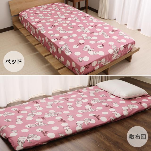 ディズニー リトルマーメイド すっぽりシーツ シングルサイズ 100×200×30cm ボックスシーツ 敷布団カバー 兼用シーツ ドットアリエル