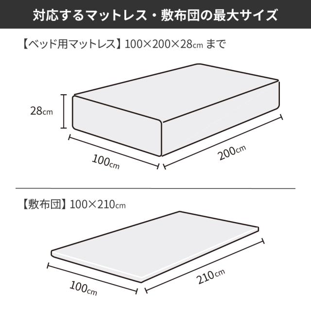 ベッドマットレス:シングルサイズ 縦横が100×200cmで、高さ28cm以内