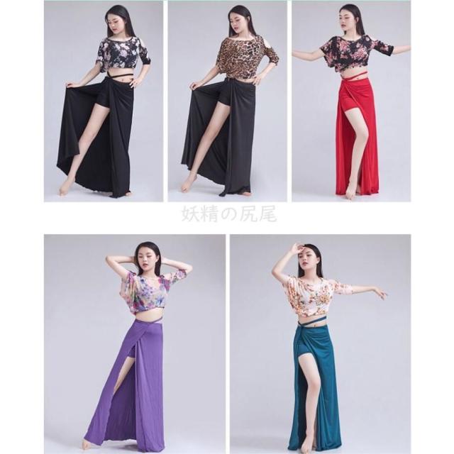 ベリーダンス衣装 ダンス衣装トップス 2点セット レディース社交ダンス ロングスカート レッスン着フィットネス 練習服 ヒョウ柄 S ~ XXXL全店二点送料無料