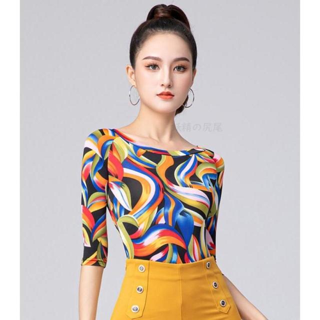 ラテンダンス トップス ダンス衣装 レオタード衣裳 モダンダンス ステージ衣装レディース 社交ダンス シャツ練習着 ブラウス上着レッスン花柄 全店二点送料無料