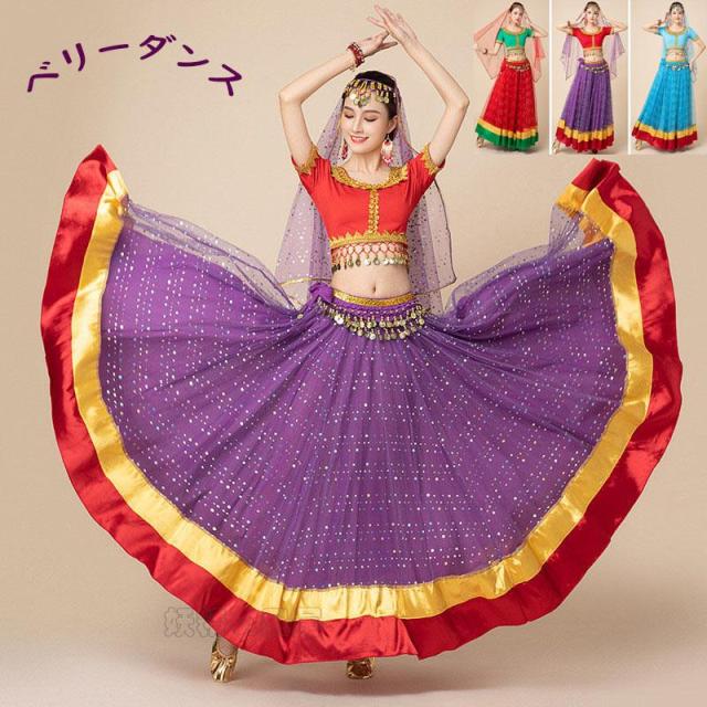 ベリーダンス 衣装 レディース ベリー 演出服 スパンコール付き スカートセット ジャスミン コスプレ衣装 ベリー ウェア ウェストチェーン コインスカーフ