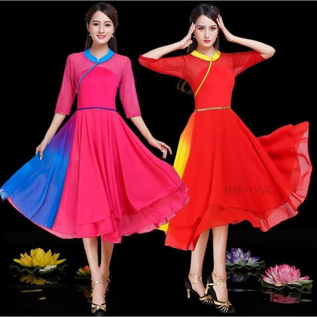 社交ダンスドレス ダンスウェア ワンピース古典ダンス衣装レディースドレス中国風踊り 演出服ロングワンピース モダンドレス社交ダンスドレス全店二点送料無料