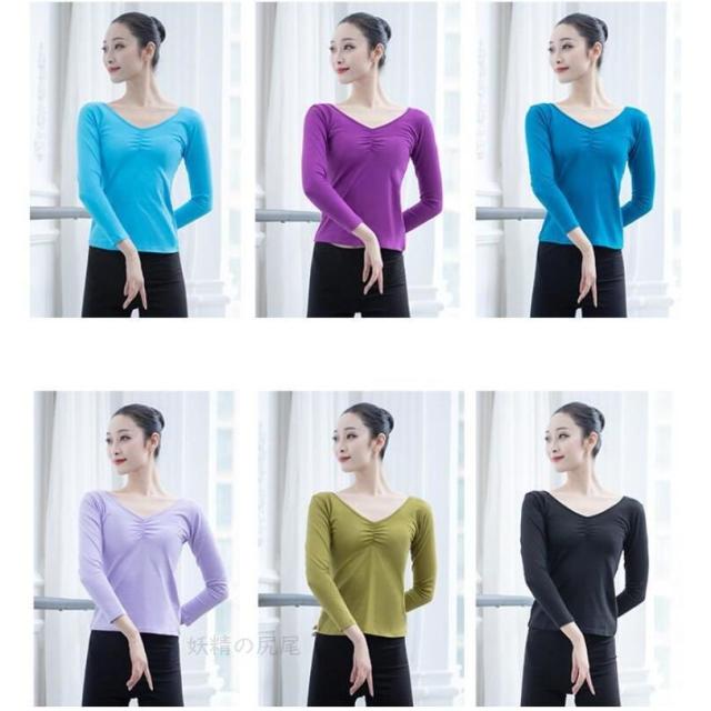 ダンスウェア レディース トップス Tシャツ 長袖 レッスンウェア 社交ダンス衣装 ヨガウェア練習着フィットネス バレエ 無地ステージ日常着 全店二点送料無料