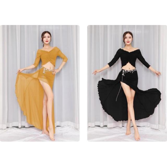 ベリーダンス ダンス衣装レディース2点上下セット レッスン着トップスとスカート社交ダンス ベリーダンス衣装 透け感ラテンダンス セクシー 全店二点送料無料