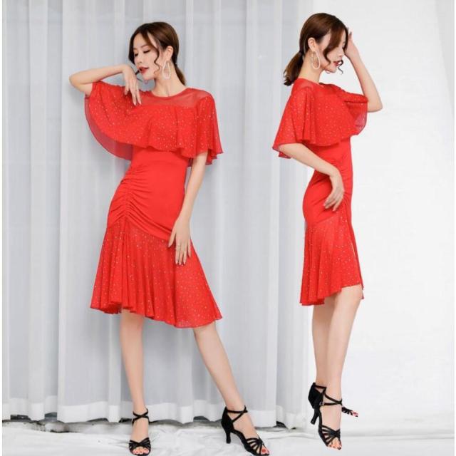 ラテンダンスウェアドレス レディースワンピース舞台服ダンス衣装モダンドレス社交ダンス 練習用ステージ衣装フレアワンピース レッスン全店二点送料無料