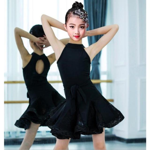 ラテンドレス演出服キッズダンス衣装 子供 袖なしワンピース ジュニア ダンスウェア社交ダンス モダンドレス舞台レッスン着レース刺繍ステージ全店二点送料無料
