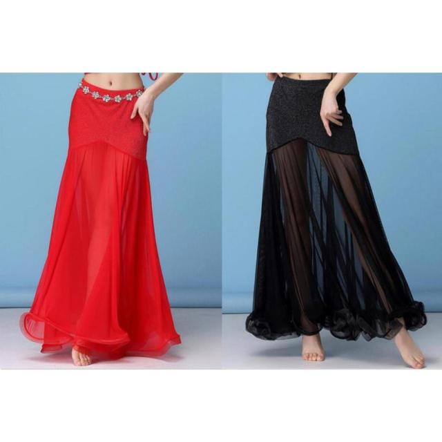 ベリーダンス衣装 ロングスカート レディース ダンス衣装レッスン着ベリーダンス衣装ロング丈 ラテンダンス衣装シースルー大人ルンバ ラメ素材 全店二点送料無料