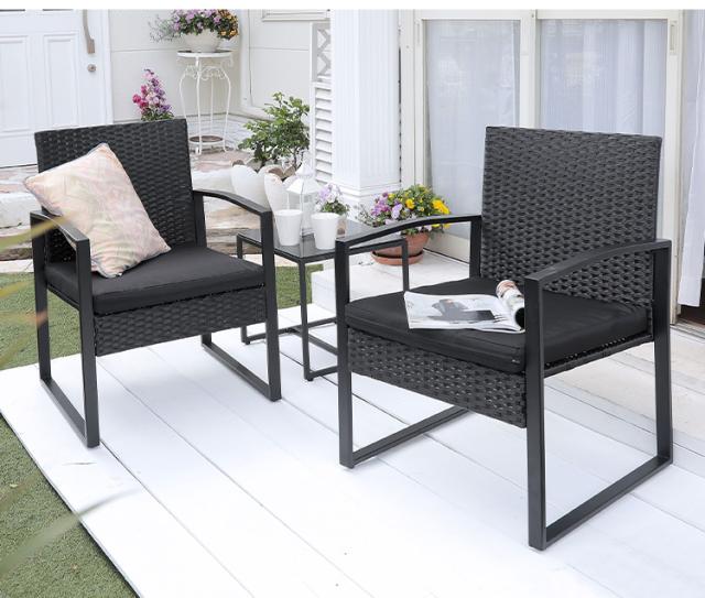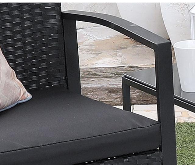ラタン調 ガーデンセット ガーデン3点セット ガーデンファニチャー ガーデンテーブル ガーデンチェア クッション付き ラタン ガラステーブル 肘掛け付き ベランダ テラス 屋外家具(代引不可)【送料無料】