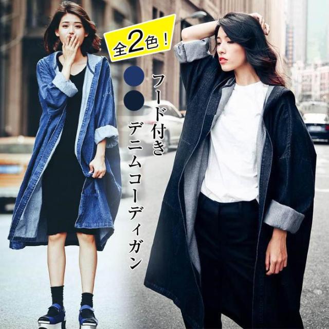 ★キーワード:トレンチコート デニムコート アウター ロングコート レディース 長袖 フード付き ロング 体型カバー ロングジャケット 羽織り 大人 上品 ゆったり 落ち感 ロング丈ジャケット 春コート 黒 アウター 秋服 韓国風 オーバー 30代 40代 50代 大きいサイズ オシャレ
