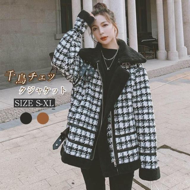 グレンチェック チェスターコート コート レディース 冬 千鳥柄コート 中綿コート 防寒 暖か 秋冬 裏ボア 裏起毛 ショートコート ゆったり 秋 冬