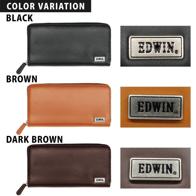 エドウイン 22269251 EDWIN 財布 サイフ 長財布 ボンデッドレザー ラウンドジップ 0510741 プレゼント ブラック ブラウン
