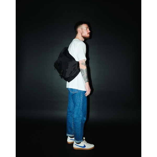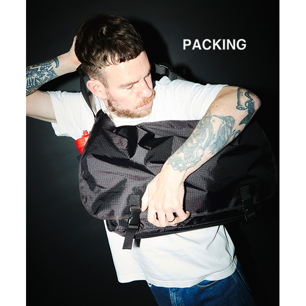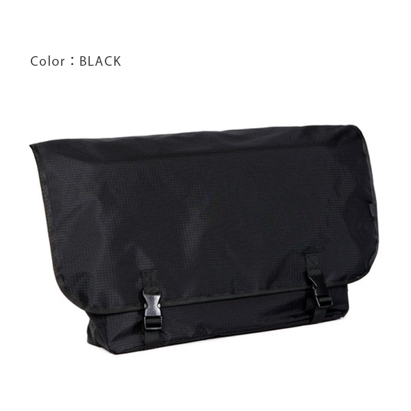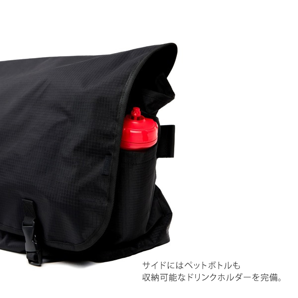 —PACKING定番メッセンジャーの素材がアップデートして新登場— かなり大きな容量のメッセンジャーバッグ。 内側にPCやタブレットを収納できるポケットを付属しています。 サイドにはペットボトルも収納可能なドリンクホルダーを完備。 ブラックはシーンを問わずコーディネートに馴染みやすい。 軽量なRIP STOPナイロン素材を採用。 シンプルなデザインで容量、機能面も文句なし。 今回からキャリーバーに装着可能なので旅行にもお勧め。 | ||||||