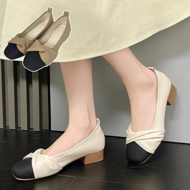 ローヒールシューズ スクエアトゥ 配色 エレガント 痛くない 歩きやすい きれいめ お洒落 大人 フェミニン