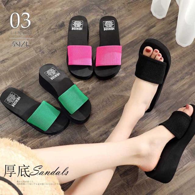美脚サンダル 厚底サンダル レディース 歩きやすい ビーチサンダル ヒールサンダル