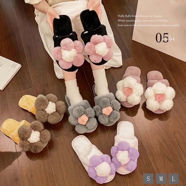 レディース 室内履き お花モチーフ ルームスリッパ ふわふわ 散歩ミュート産後 ファーサンダル 滑り止め