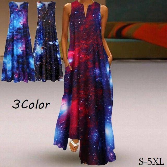 ワンピース ドレス ノースリーブ 袖なし Aライン フレア マキシ丈 ロング レディース ゆったり 体型カバー ハイウエスト Vネック オープンフロン