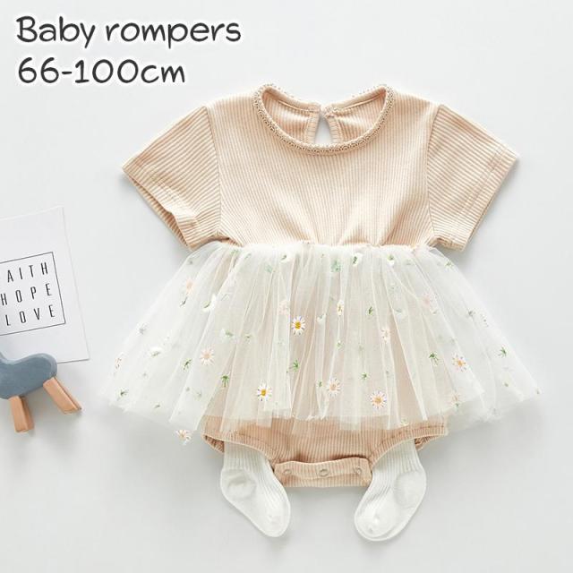 チュールスカート付きベビー用半袖ロンパース。