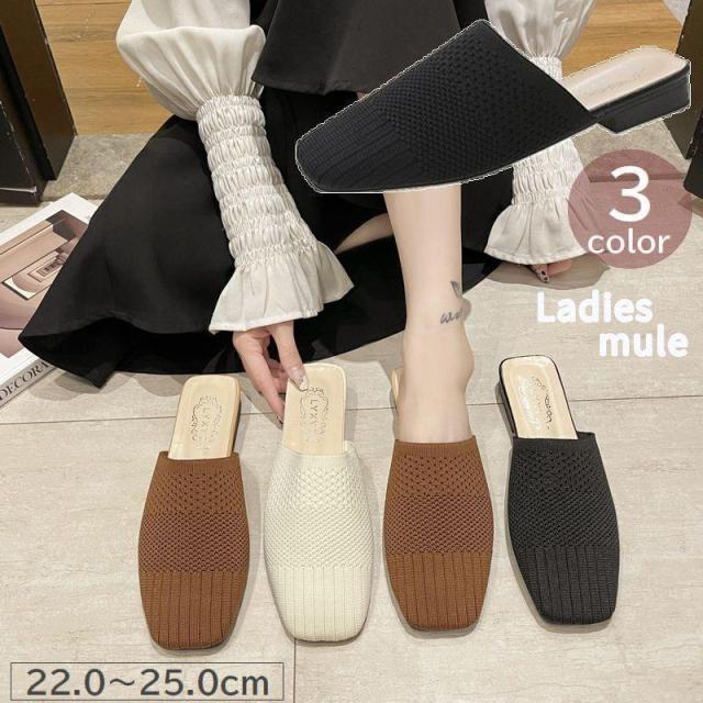 涼しげなメッシュ編みとスクエアトゥのつま先がおしゃれなレディースミュール。
