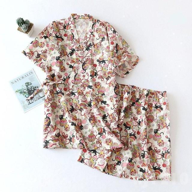 おやすみ甚平パジャマレディース夏綿半袖ダブルガーゼ綿甚平パジャマ桜柄夏入院大人用大きいサイズショットパンツルームサプリ30代40代20代