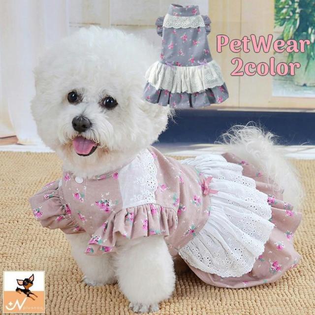 レースや花柄のデザインが可愛い、ペット用ワンピースです。
