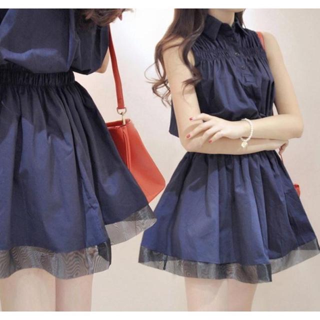ワンピース レディースワンピース ノースリーブ 婦人用 女性用 レディース レディースワンピ 襟付き 襟 ボタン 可愛い かわいい 短め ミニ丈 ミニ