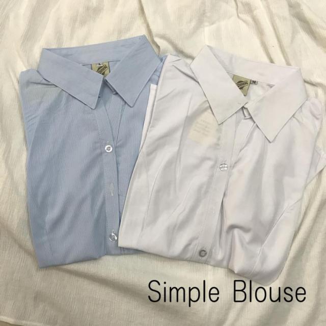 シンプルブラウス ストライプ 無地スリムシャツ 半袖開襟タイプトップス オフィス キレイ目 レディース やわらか素材
